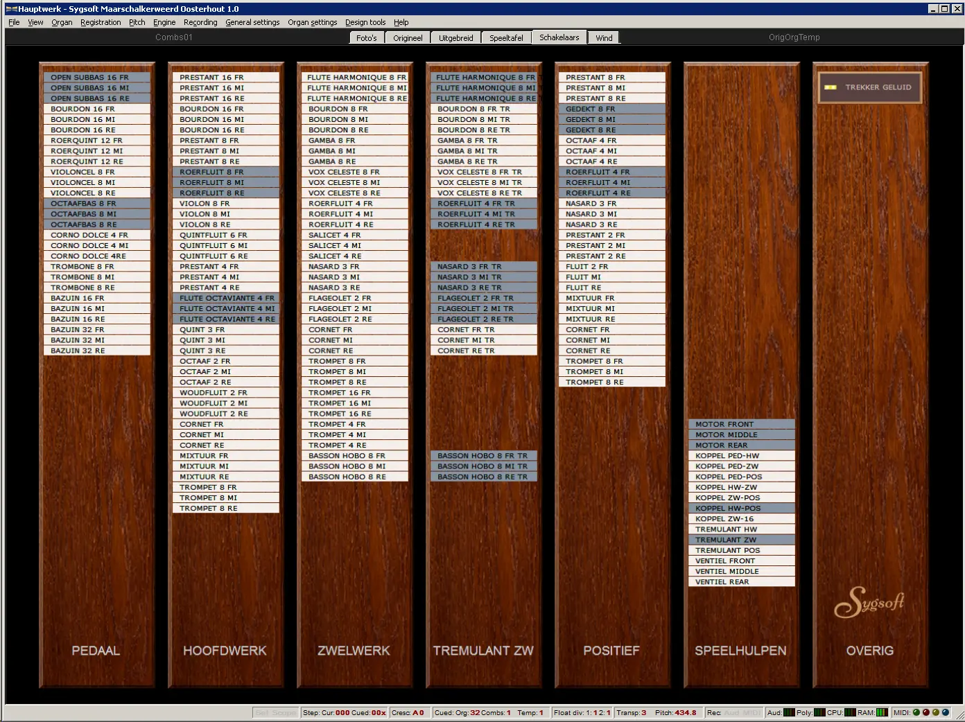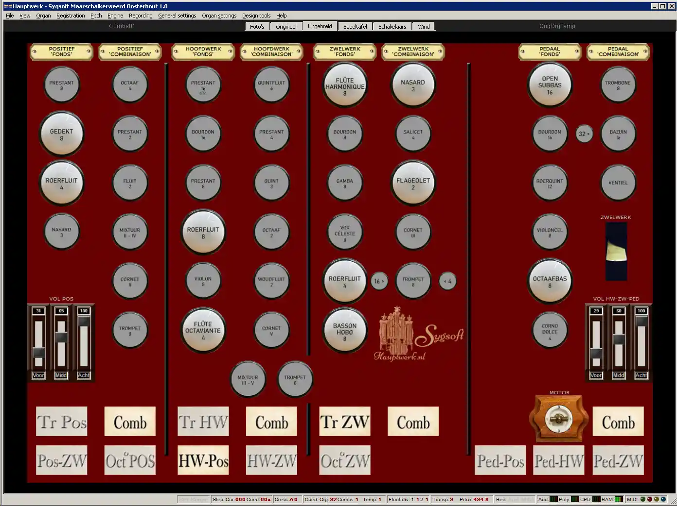 de pijpstokken zijn voorzien van mahonie opdikken. Het Hoofdwerk kreeg twee laden: een voor de grondstemmen en een voor de combinatiestemmen.