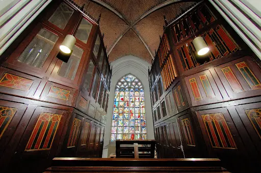 De windladen liggen parallel aan de torenmuren, behalve de lade van het Positief, die iets schuin werd gelegd.