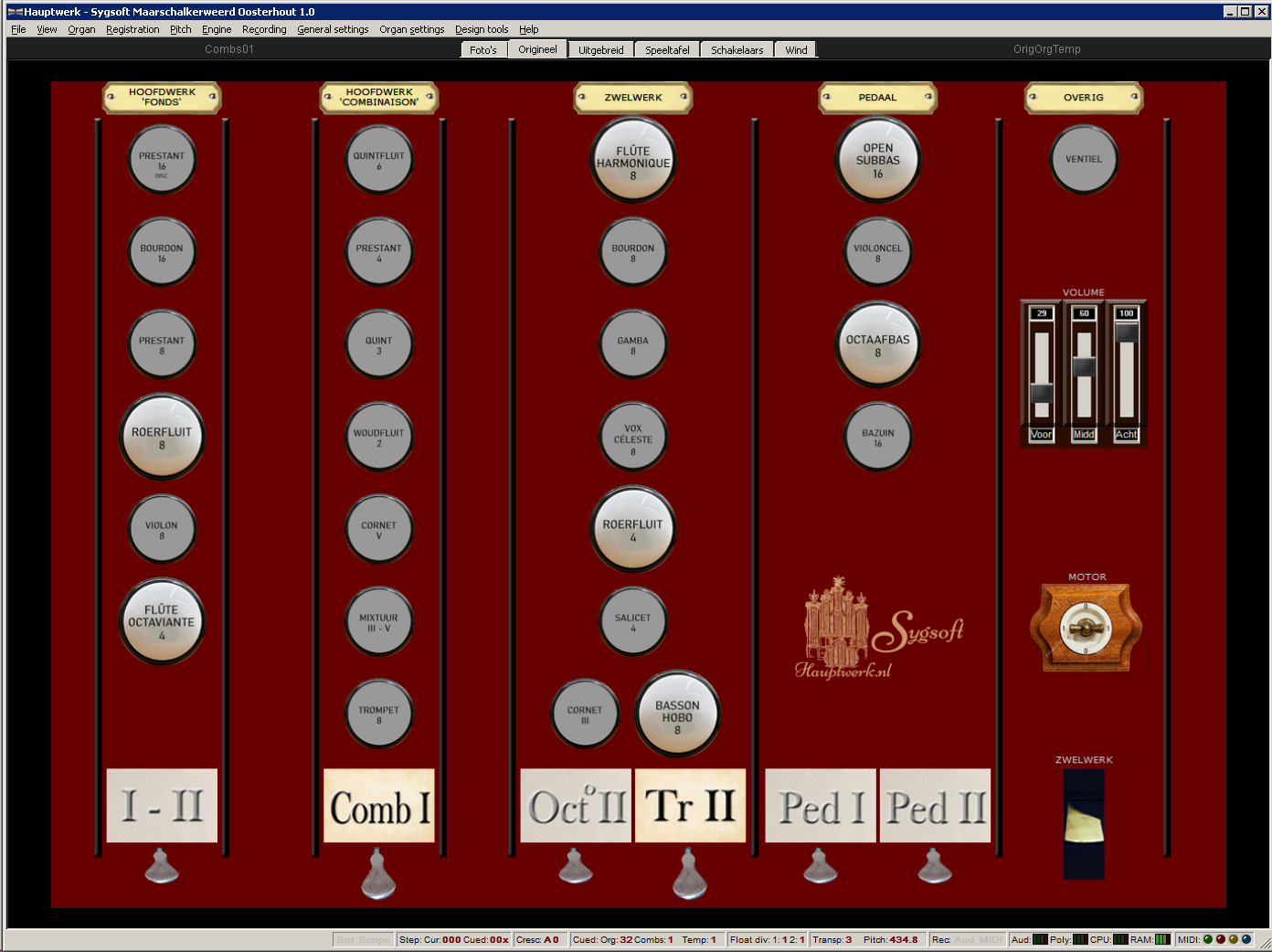 Voor Hoofdwerk, Zwelwerk en Pedaal vindt u 3 schuifjes te weten: