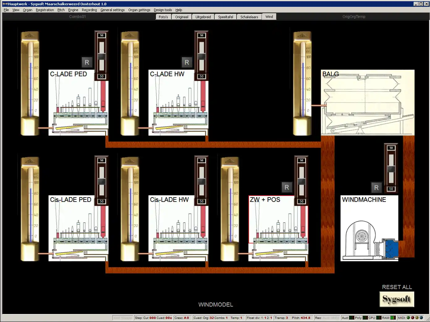 die door middel van harmonicakokers verbonden werden met de windladen.